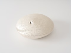 Yuki Ferdinandsen is a metalsmith artist living and working in Denmark, whose refined, minimalist works embody the aesthetics and traditional craftsmanship of her native Japan as distilled through a Danish lens. Working primarily in silver, she draws inspiration from nature, in particular the spirals of the Fibonacci sequence. Ferdinandsen’s work demonstrates a profound relationship to her material; the organic forms are articulated with rhythmic patterns created using the arare technique by which raised dots emerge through multiple strikes of a chasing hammer. Approximately twenty taps are required to produce each bead-like protrusion, and the meditative and repetitive nature of the process imbues her works with an ethereal quality.