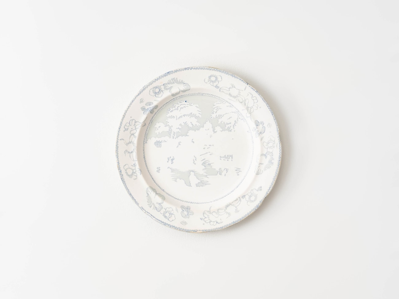 Caroline Slotte carves antique plates and china tableware, subtracting matter to render intricate, sandblasted lines and ghostly tracings. Her delicate yet densely-layered carvings interrupt the material coherence of these common objects, revealing moments of absence, ambiguity, and blankness. These acts of redaction underscore the curious nature of mass-produced decorative objects; by taking away layers of glaze and clay, Slotte draws our attention to their stylized forms and materiality, as in Delftware ceramics with their familiar yet distant landscapes. Each of her scenes, as though carved by erosion, becomes a uniquely altered variation on the theme. In doing so, her artworks broaden our attention to address questions of cultural association, material memory, and the inevitable losses and transformations of time.