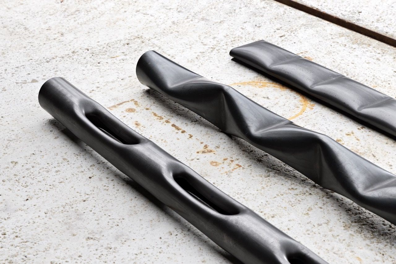 While beginning his career trained in painting and stone carving, Jørgensen has become well established as a designer. His goal with any material is to investigate the full breadth of possibilities it offers, allowing him to arrive at his own unique synthesis of matter and idea. Recently, he has turned his focus to manipulating steel pipe as a medium for sculpture. In her essay Adaptive Growth, Rebekah Frank writes of Jørgensen, “His current sculptural exploration begins with lengths of low carbon steel pipe, a material that is the backbone of industrial applications. Within manufacturing, urban planning, and agriculture, these pipes are known for their durability against stress, fatigue, and breakage. Taken out of context, they are recognizable as an industrial material, but under the pressure Jørgensen applies through torch and tooling, they transform into monolithic columns, inviting closer inspection and a rethinking of the medium.”